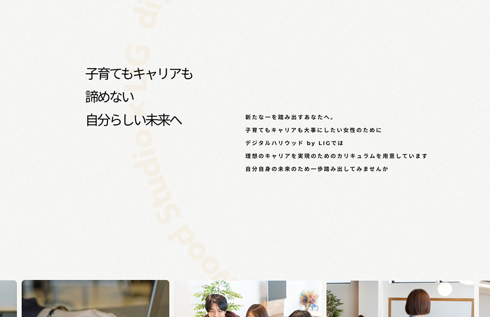 キャッチコピーや画像の配置でリスキリングに悩んでいる女性の後押しをする。 -