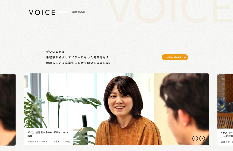 スクールの第二サイトということで、スクールのメインカラーであるオレンジを基調に女性向けということを主張したいためナチュラル目なカラー配置